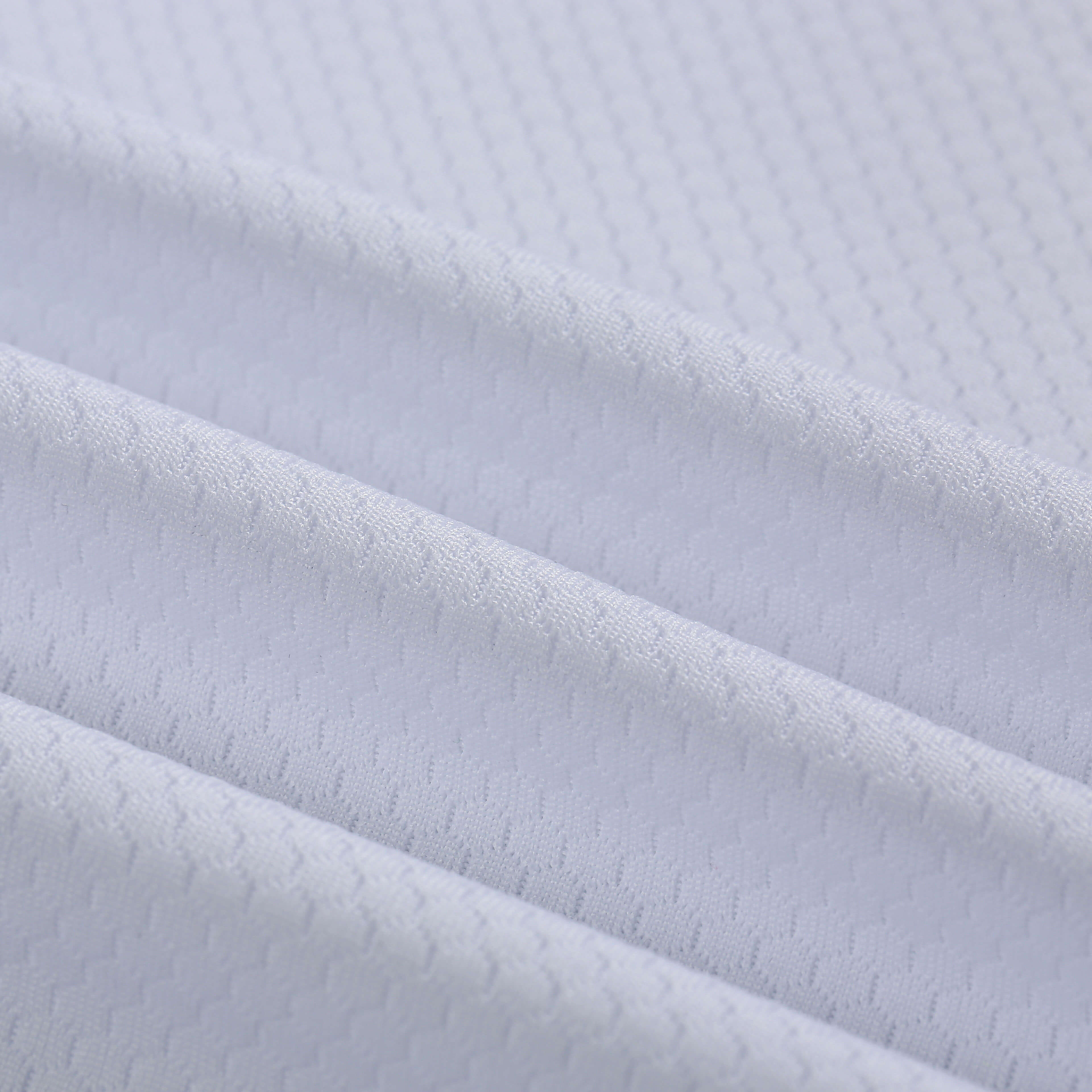 Engineered for high-intensity sports, this lightweight fabric features a hexagonal honeycomb mesh structure to maximize airflow and keep athletes cool. The polyester blend offers quick-dry moisture management and UV resistance, essential for outdoor football matches. OEKO-TEX® certified for safety, it withstands rigorous movement without losing shape or color vibrancy. Ideal for breathable jerseys and training gear, its durable construction resists abrasion while maintaining a soft touch. Precision manufacturing ensures eco-friendly processes and consistent performance for team uniforms.